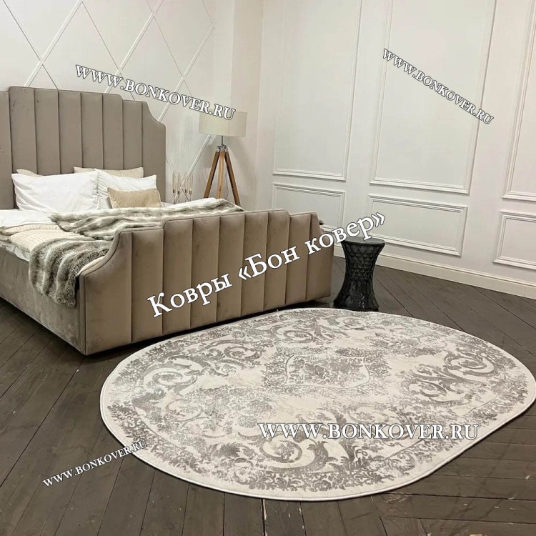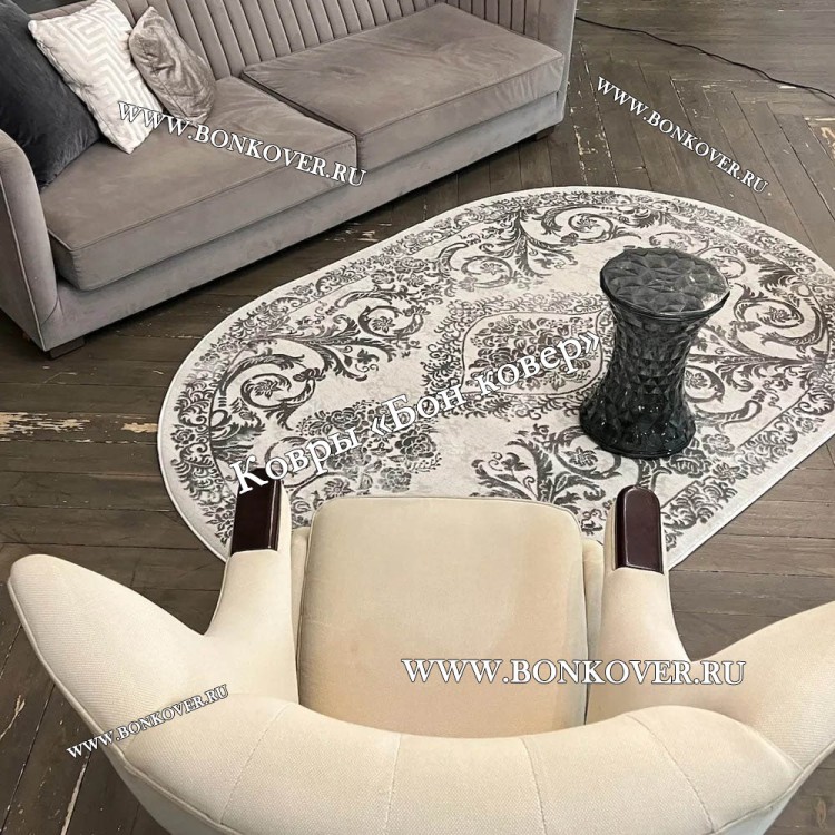 Изящный Ковер в гостиную дизайн 12 Серый Овал наполняет интерьер квартиры теплом и уютом, гармонично сочетает в себе изящество и красоту. Он создан из износостойких материалов, комфортный и долговечный.